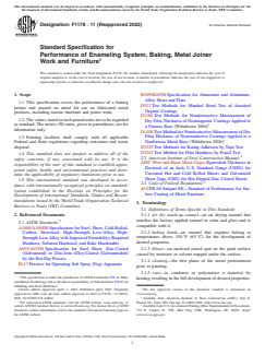 ASTM F1178-11(2022) - Standard Specification for Performance of Enameling System, Baking, Metal Joiner Work and Furniture
