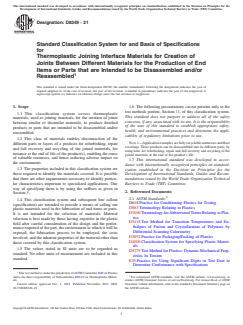 ASTM D8349-21 - Standard Classification System for and Basis of Specifications for Thermoplastic Joining Interface Materials for Creation of Joints Between Different Materials for the Production of End Items or Parts that are Intended to be Disassembled and/or Reassembled
