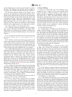 Pit Characterization: Procedures for quantifying pit size, shape, aspect ratio, density, and distribution are detailed. The use of grids or digital analysis tools aids in counting and sizing pits over designated surface areas.