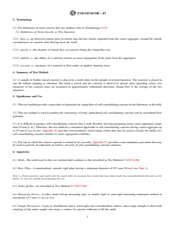 ASTM C1611/C1611M-21 is intended for SCC with coarse aggregate up to 25 mm (1 in.) in size, as larger aggregates pose challenges in achieving the desired flowability without segregation.Segregation Resistance and Visual Stability