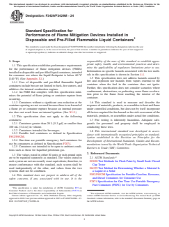 ASTM F3429/F3429M-24 - Standard Specification for Performance of Flame Mitigation Devices Installed in Disposable and Pre-Filled Flammable Liquid Containers