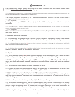 1.5 This specification does not address hazards caused by fire and explosion nor hazards from vapors external to the container when the fuel in the container does not ignite. Further, this specification does not consider scenarios where confinement, obstructions, or preheating cause flame acceleration prior to the flame front reaching the interior of the container.