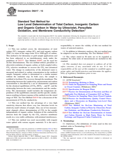 ASTM D6317-15 - Standard Test Method for Low Level Determination of Total Carbon, Inorganic Carbon and Organic Carbon in Water by Ultraviolet, Persulfate Oxidation, and Membrane Conductivity Detection