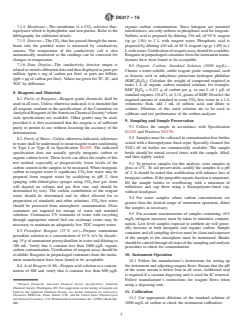 1.2 This test method has the advantage of a very high sensitivity detector that allows very low detection levels on relatively small volumes of sample. Also, use of two measurement channels allows determination of CO2 in the sample independently of organic carbon. Isolation of the conductivity detector from the sample by the CO2 selective membrane results in a very stable calibration, with minimal interferences.