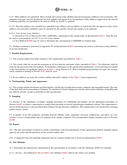 - Specifies acceptable additives and their maximum concentrations, including antioxidants, metal deactivators, electrical conductivity improvers, fuel system icing inhibitors, and biocides.
