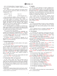 - Outlines standardized test methods for verifying fuel properties, referencing several ASTM methods to ensure traceability and reproducibility.