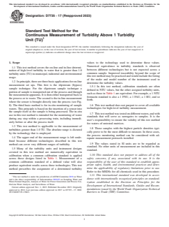 ASTM D7725-17(2023) - Standard Test Method for the Continuous Measurement of Turbidity Above 1 Turbidity Unit (TU)