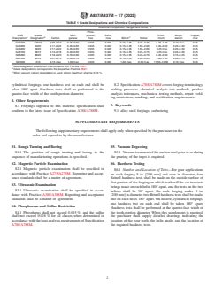 ASTM A837/A837M-17(2022) is an international standard developed by ASTM International, specifying requirements for alloy steel forgings intended for carburizing applications. This standard addresses the chemical, mechanical, and testing requirements for steel forgings used where a hard, wear-resistant surface and tough core are necessary, such as in heavy-duty gears and automotive components. The specification outlines requirements for heat treatment, rough machining, chemical composition, weldability, and hardness testing to ensure high performance and reliability of forged steel components.
