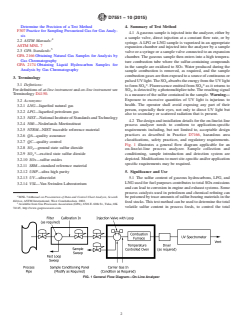 SIGNIFICANCE AND USE 5.1 The sulfur content of gaseous hydrocarbons, LPG, and LNG used for fuel purposes contributes to total SOx emissions and can lead to corrosion in engine and exhaust systems. Some process catalysts used in petroleum and chemical refining can be poisoned by trace amounts of sulfur-bearing materials in the feed stocks. This test method can be used to determine the total volatile sulfur content in process feeds, to control the total volatile sulfur content in finished products and, as applicable, to meet regulatory requirements. Practice D1072 has previously been used for the measurement of total sulfur in gaseous fuels. SCOPE 1.1 This test method covers the determination of total volatile sulfur in gaseous hydrocarbons, Liquefied Petroleum Gases (LPG) and Liquefied Natural Gas (LNG). It is applicable to analysis of natural gaseous fuels, process intermediates, final product hydrocarbons and generic gaseous fuels containing sulfur in the range of 1 to 200 mg/kg. Samples can also be tested at other total sulfur levels using either pre-concentration methods or sample dilution using a diluent gas. The methodology for preconcentration and dilution techniques is not covered in this test method. The precision statement does not apply if these techniques are used in conjunction with this test method. The diluent gas, such as UHP nitrogen, zero nitrogen or zero air, shall not have a significant total sulfur concentration. 1.2 This test method may not detect sulfur compounds that do not volatilize under the conditions of the test. 1.3 This test method covers the laboratory determination and the at-line/on-line determination of total volatile sulfur in gaseous fuels, LPG, and LNG. 1.4 This test method is applicable for total volatile sulfur determination in gaseous hydrocarbons, LPG, and LNG containing less than 0.35 mole % halogen(s). 1.5 The values stated in SI units are to be regarded as standard. No other units of measurement are included in this standard. 1.6 This standard does not purport to address all of the safety concerns, if any, associated with its use. It is the responsibility of the user of this standard to establish appropriate safety and health practices and determine the applicability of regulatory limitations prior to use. See Sections 4.1, 7.3, 7.4, 11.2, and Section 8.