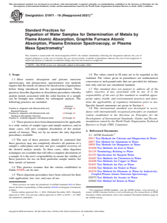 ASTM D1971-16(2021)e1 - Standard Practices for Digestion of Water Samples for Determination of Metals by Flame Atomic Absorption, Graphite Furnace Atomic Absorption, Plasma Emission Spectroscopy, or Plasma Mass Spectrometry