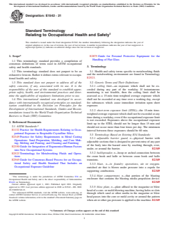 ASTM E1542-21 covers essential occupational health and safety terminology relevant to a broad spectrum of industries, with terms adopted from associated ASTM standards. Key topics include: