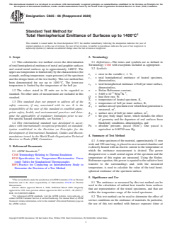 (Test Method)Standard Test Method for Total Hemispherical Emittance of Surfaces up to 1400°C