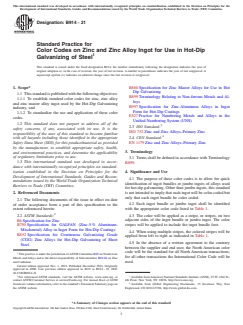 ASTM B914-21 - Standard Practice for Color Codes on Zinc and Zinc Alloy Ingot for Use in Hot-Dip Galvanizing of Steel