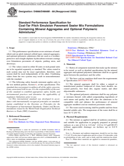 ASTM D4866/D4866M-88(2023) - Standard Performance Specification for Coal-Tar Pitch Emulsion Pavement Sealer Mix Formulations Containing Mineral Aggregates and Optional Polymeric Admixtures