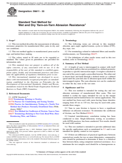 Testing Environments: The method covers procedures for both dry and wet abrasion resistance testing, with special attention to yarn handling, preconditioning, and specimen preparation.