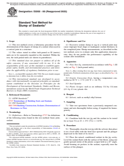 - Slump Measurement: Describes a controlled method to measure vertical flow (slump) of building sealants, ensuring consistency in test results.