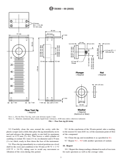 - Test Apparatus: Specifies the use of a flow test jig in either SI (metric) or inch-pound units, a gravity convection oven, steel spatula, and plastic scraper.