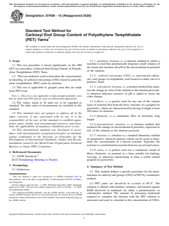 ASTM D7409-15(2020) - Standard Test Method for Carboxyl End Group Content of Polyethylene Terephthalate (PET) Yarns