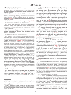 1.2 This standard describes baseline-performance requirements, which includes metal object detection performance, safety (electrical, mechanical, fire), electromagnetic compatibility, environmental conditions and ranges, and mechanical durability. The requirements for metal detection performance are unique and, therefore, test methods for these parameters are provided, including the design of test objects. An agency or organization using this standard is encouraged to add their unique operationally-based requirements to those requirements listed in this baseline-performance standard.