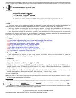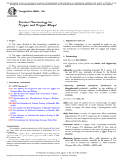 SIGNIFICANCE AND USE 3.1 This terminology is not intended to apply to any standard, test method, practice, or other document not within the jurisdiction of Committee B05 on Copper and Copper Alloys. SCOPE 1.1 The terms defined in this terminology standard are applicable to copper and copper alloy products specifications, test methods, practices, and other documents within the jurisdiction of Committee B05 on Copper and Copper Alloys. 1.2 The values stated in inch-pound units are to be regarded as standard. The values given in parentheses are mathematical conversions to SI units that are provided for information only and are not considered standard. 1.3 This international standard was developed in accordance with internationally recognized principles on standardization established in the Decision on Principles for the Development of International Standards, Guides and Recommendations issued by the World Trade Organization Technical Barriers to Trade (TBT) Committee.
