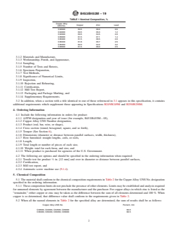 5.1 The material shall conform to the chemical composition requirements in Table 2 for the Copper Alloy UNS No. designation