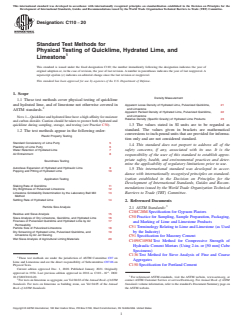 ASTM C110-20: Standard Test Methods for Physical Testing of Quicklime, Hydrated Lime, and Limestone provides comprehensive procedures for evaluating the physical properties of lime products and limestone. Published by ASTM International, this standard is essential for manufacturers, quality control laboratories, and users in industries such as masonry, construction, and agriculture. The test methods focus on aspects including plastic consistency, soundness, application characteristics, particle size distribution, and density, ensuring material quality and consistency across various applications.