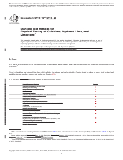 1.1 These test methods cover physical testing of quicklime and hydrated lime, and of limestone not otherwise covered in ASTM standards.2