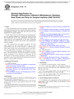 ASTM F139-19 - Standard Specification for Wrought 18Chromium-14Nickel-2.5Molybdenum Stainless Steel Sheet and Strip for Surgical Implants (UNS S31673)