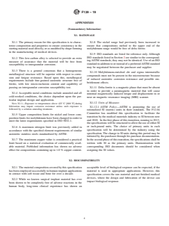 ASTM F139-19 is a technical specification published by ASTM International. Its full title is "Standard Specification for Wrought 18Chromium-14Nickel-2.5Molybdenum Stainless Steel Sheet and Strip for Surgical Implants (UNS S31673)". This standard covers: ABSTRACT This specification covers the chemical, mechanical, and metallurgical requirements for wrought 18chromium-14nickel-2.5molybdenum stainless steel sheet and strip used for the manufacture of surgical implants. Sheet and strip shall be furnished as specified, in the annealed or cold-worked condition. Types of finish available in sheet and strip are dull cold rolled, bright cold rolled, intermediate polished, general-purpose polished, dull satin-finished, high luster finish, and mirror finish. Tensile test, hardness test, and intergranular corrosion susceptibility test shall be performed in accordance with specified requirements. SCOPE 1.1 This specification covers the chemical, mechanical, and metallurgical requirements for wrought 18chromium-14nickel-2.5molybdenum stainless steel sheet and strip used for the manufacture of surgical implants. 1.2 The values stated in either SI units or inch-pound units are to be regarded separately as standard. The values stated in each system may not be exact equivalents; therefore, each system shall be used independently of the other. Combining values from the two systems may result in non-conformance with the standard. 1.3 This standard does not purport to address all of the safety concerns, if any, associated with its use. It is the responsibility of the user of this standard to establish appropriate safety, health, and environmental practices and determine the applicability of regulatory limitations prior to use. 1.4 This international standard was developed in accordance with internationally recognized principles on standardization established in the Decision on Principles for the Development of International Standards, Guides and Recommendations issued by the World Trade Organization Technical Barriers to Trade (TBT) Committee.