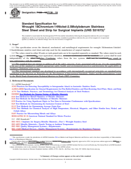 REDLINE ASTM F139-19 - Standard Specification for Wrought 18Chromium-14Nickel-2.5Molybdenum Stainless Steel Sheet and Strip for Surgical Implants (UNS S31673)