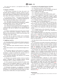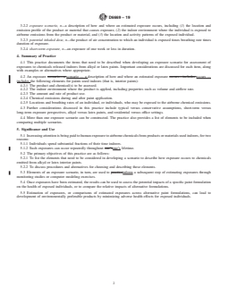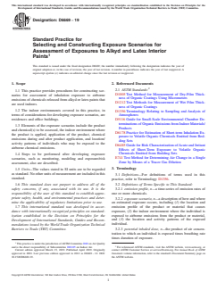 ASTM D6669-19 is a standard published by ASTM International. Its full title is "Standard Practice for Selecting and Constructing Exposure Scenarios for Assessment of Exposures to Alkyd and Latex Interior Paints". This standard covers: SIGNIFICANCE AND USE 5.1 Increasing attention is being paid to human exposure to airborne chemicals from products or materials used indoors, for two reasons: 5.1.1 Individuals spend substantial fractions of their time indoors. 5.1.2 Such exposures can occur repeatedly throughout one’s lifetime. 5.2 The primary objectives of this practice are as follows: 5.2.1 To list the elements that need to be considered in developing a scenario to describe how exposure occurs to chemicals emitted from alkyd or latex interior paints. 5.2.2 To discuss procedures and alternatives for choosing and describing these elements. 5.3 Elements of an exposure scenario, in turn, are used to inform a subsequent step of estimating exposures through monitoring studies or computer modeling exercises. 5.4 Once exposures have been estimated, the results can be used to assess the potential impacts of a specific paint formulation on the health of exposed individuals, or to compare the relative impacts of alternative formulations. 5.5 Estimation of exposures, or comparisons of estimated exposures across alternative paint formulations, can lead to development of environmentally preferable products by minimizing adverse health effects for exposed individuals. SCOPE 1.1 This practice provides procedures for constructing scenarios for assessment of inhalation exposure to airborne emissions of chemicals released from alkyd or latex paints that are used indoors. 1.2 The indoor environments covered in this practice, in terms of considerations for developing exposure scenarios, are residences and office buildings. 1.3 Elements of the exposure scenarios include the product and chemical(s) to be assessed, the indoor environment where the product is applied, application of the product, chemical emissions during and after product application, and location/activity patterns of individuals who may be exposed to the airborne chemical emissions. 1.4 Steps to be performed after developing exposure scenarios, such as monitoring, modeling and exposure/risk assessment, also are described. 1.5 Units—The values stated in SI units are to be regarded as standard. No other units of measurement are included in this standard. 1.6 This standard does not purport to address all of the safety concerns, if any, associated with its use. It is the responsibility of the user of this standard to establish appropriate safety, health, and environmental practices and determine the applicability of regulatory limitations prior to use. 1.7 This international standard was developed in accordance with internationally recognized principles on standardization established in the Decision on Principles for the Development of International Standards, Guides and Recommendations issued by the World Trade Organization Technical Barriers to Trade (TBT) Committee.