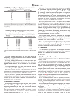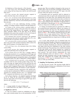 4.4 A cyclic surge pressure test of restrained joint test specimens determines the effect of the joint restraint product on the cyclic fatigue life of PVC pipe. This test method provides a means for quickly identifying any reduction in performance that might result from the combination of the joint restraint product and the pipe. The...