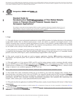 ASTM E2982-21 - Standard Guide for Nondestructive Examination of Thin-Walled Metallic Liners in Filament-Wound Pressure Vessels Used in Aerospace Applications