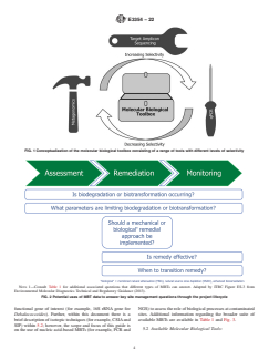 SIGNIFICANCE AND USE 4.1 Contaminated sites subject to remediation are growing in complexity and associated remediation costs, presenting a challenge for managers of contaminated sites. The need to properly monitor, evaluate, and report remediation processes (including physical, chemical, and biological) characterizing site conditions and contaminant mass and attenuation is critical for the evaluation and selection of effective remediation strategies. Assessment and characterization of biological processes associated with contaminant attenuation is supported and improved by the accurate and consistent use of molecular biological tools (MBTs) including data acquisition, interpretation, and reporting. 4.2 The development of this guide through ASTM International is designed to meet the needs of managers of contaminated sites within the United States and elsewhere. The variety of available MBTs and the complexity with which they are currently being applied are not addressed in existing ASTM International Standards. The principal users of this guide should be industry project managers, regulators, consultants, analytical laboratories, and community stakeholders. SCOPE 1.1 This guide provides a framework for the application of molecular biological tools (MBTs) to assess and characterize in-situ biological processes to improve contaminated soil and groundwater management. While the focus of this guide is on in-situ biological processes, some concepts of how to apply MBTs can also be applied to ex-situ bioremediation approaches (for example, biopiles, bioreactors) to support design, operation, and troubleshooting. The intent of this guide is to develop a consistent way in which MBTs are applied at contaminated sites, not to develop expertise. Technical experts need to be engaged whenscoping, planning, executing, and interpreting data for MBTs. Lastly, there is a brief description of isotopic techniques within section 5.2; however, the scope and focus of this guide is the use of nucleic acid-based MBTs to assess biological processes at contaminated sites. 1.2 This standard does not purport to address all of the safety concerns, if any, associated with its use. It is the responsibility of the user of this standard to establish appropriate safety, health, and environmental practices and determine the applicability of regulatory limitations prior to use. 1.3 This international standard was developed in accordance with internationally recognized principles on standardization established in the Decision on Principles for the Development of International Standards, Guides and Recommendations issued by the World Trade Organization Technical Barriers to Trade (TBT) Committee.