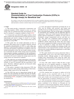 ASTM E3355-23 - Standard Guide for Characterization of Coal Combustion Products (CCPs) in Storage Area(s) for Beneficial Use
