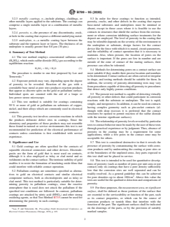 1.1 This test method covers equipment and methods for determining the porosity of gold and palladium coatings, particularly electrodeposits and clad metals used on electrical contacts.