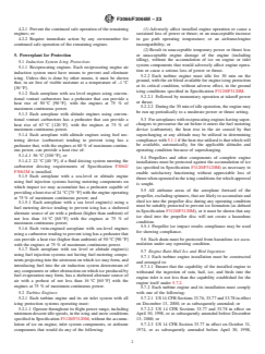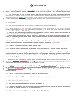 ABSTRACT This specification covers minimum requirements for hazard mitigation in propulsion systems installed on small aeroplanes. The applicant for a design approval must seek the individual guidance to their respective civil aviation authority (CAA) body concerning the use of this specification as part of a certification plan. SCOPE 1.1 This specification covers minimum requirements for hazard mitigation in propulsion systems installed on small aeroplanes. 1.2 The applicant for a design approval must seek the individual guidance to their respective CAA body concerning the use of this standard as part of a certification plan. For information on which CAA regulatory bodies have accepted this standard (in whole or in part) as a means of compliance to their Small Aircraft Airworthiness regulations (Hereinafter referred to as “the Rules”), refer to ASTM F44 webpage (www.ASTM.org/COMITTEE/F44.htm) which includes CAA website links. 1.3 Units—The values stated are SI units followed by imperial units in brackets. The values stated in each system may not be exact equivalents; therefore, each system shall be used independently of the other. Combining values from the two systems may result in non-conformance with the standard. 1.4 This standard does not purport to address all of the safety concerns, if any, associated with its use. It is the responsibility of the user of this standard to establish appropriate safety, health, and environmental practices and determine the applicability of regulatory limitations prior to use. 1.5 This international standard was developed in accordance with internationally recognized principles on standardization established in the Decision on Principles for the Development of International Standards, Guides and Recommendations issued by the World Trade Organization Technical Barriers to Trade (TBT) Committee.