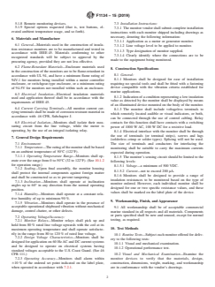 ABSTRACT This specification covers monitoring devices (monitors) for the automatic detection and signaling of low insulation resistance values in idle electrical motors or generators, or both. Monitors are intended for permanent installation in both existing or new panels and controller enclosures designed for marine application. These insulation resistance monitors shall be classified in four types: Type I are alternating current generator monitors, Type II are alternating current generator monitors, Type III are direct current motor monitors, and Type IV are direct current generator monitors. The enclosure materials used in the construction of the monitors are to be flame-retardant and the current carrying terminals shall be made of corrosion resistant material. The monitors shall isolate their measuring circuit from the line voltage, while the motor is operating, by the use of an integral isolating relay. In the design of these monitors, environmental factors shall be considered: operating temperature range, sealing, inclination, humidity, and vibration. Also, the monitor relays, voltage characteristics and operating accuracy shall be considered in the design of these monitors. Each monitor shall be subjected to the following: visual and mechanical examination and operational test. SCOPE 1.1 This specification covers monitoring devices (monitors) for the automatic detection and signaling of low insulation resistance values in idle electrical motors or generators, or both. 1.2 Monitors are intended for permanent installation in both existing or new panels and controller enclosures designed for marine application. 1.3 The values stated in SI units are to be regarded as standard. The values given in parentheses are mathematical conversions to inch-pound units that are provided for information only and are not considered standard. 1.4 The following safety hazards caveat pertains only to the test method described in this specification: This standard does not purport to address all of the safety concerns, if any, associated with its use. It is the responsibility of the user of this standard to establish appropriate safety, health, and environmental practices and determine the applicability of regulatory limitations prior to use. 1.5 This international standard was developed in accordance with internationally recognized principles on standardization established in the Decision on Principles for the Development of International Standards, Guides and Recommendations issued by the World Trade Organization Technical Barriers to Trade (TBT) Committee.