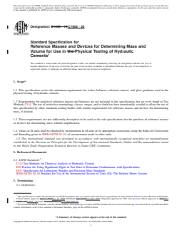 REDLINE ASTM C1005-20 - Standard Specification for Reference Masses and Devices for Determining Mass and Volume for Use in Physical Testing of Hydraulic Cements