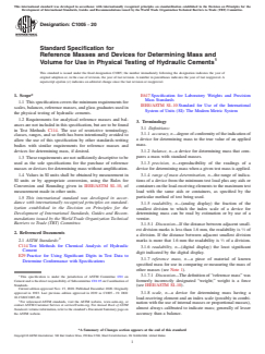 ASTM C1005-20 - Standard Specification for Reference Masses and Devices for Determining Mass and Volume for Use in Physical Testing of Hydraulic Cements