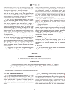 7.7 Burn Rate—Oil burns at the rate of 2 to 3.7 mm/min, the rate that the surface of the oil slick regresses downwards. This