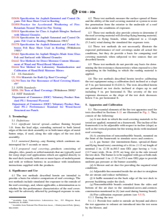 4.1 The test methods described herein are intended to provide a basis for relative comparison of roof coverings. The test methods include simulated fire exposure to the outside of the roof coverings, and, where applicable, a determination as to whether the fire performance characteristics of the roof coverings will be adversely affected by prolonged exposure to rain.