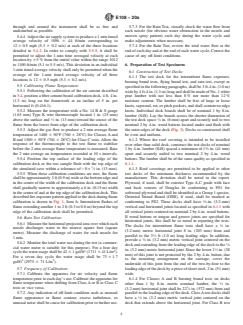 4.6 The test methods described herein involve calibrating the test equipment using a calibration deck inclined at a slope of 5 in. per horizontal ft (0.416:1). The tests described herein are performed on test decks inclined at slopes up to and including 5 in. per horizontal ft. The severity of the test exposure decreases as the slope of the test deck decreases below 5 in. per horizontal ft.