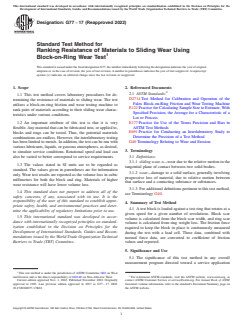 ASTM G77-17(2022) - Standard Test Method for Ranking Resistance of Materials to Sliding Wear Using Block-on-Ring Wear Test