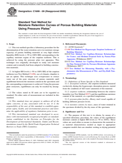 ASTM C1699-09(2023) - Standard Test Method for Moisture Retention Curves of Porous Building Materials Using Pressure Plates