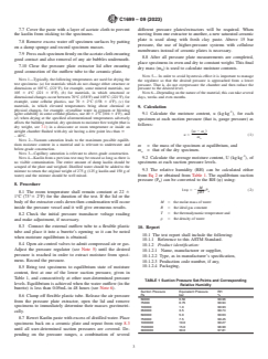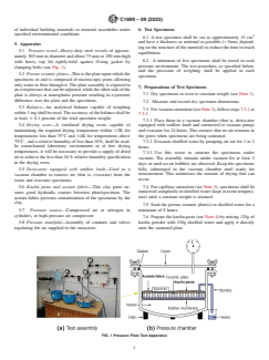 1.2 At higher RH levels (≈ 95 to 100% RH) of the sorption isotherm (see Test Method C1498), use of climatic chamber is not an option. This technique uses overpressure to extract water out of the pore structure of porous materials until equilibrium between the moisture content in the specimens and the corresponding overpressure is achieved. Using the pressure plate extractors, equilibrium can only be reached by desorption.