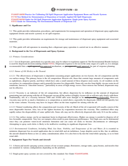 SIGNIFICANCE AND USE 3.1 This guide provides information, procedures, and requirements for management and operation of dispersant spray application equipment (boom and nozzle systems) in oil spill response. 3.2 This guide provides information on requirements for storage and maintenance of dispersant spray equipment and associated materials. 3.3 This guide will aid operators in ensuring that a dispersant spray operation is carried out in an effective manner. SCOPE 1.1 This guide covers considerations for the maintenance, storage, and use of oil spill dispersant application systems. 1.2 This guide is applicable to spray systems employing booms and nozzles and not to other systems such as fire monitors or single-point spray systems. 1.3 This guide is applicable to systems employed on ships or boats and helicopters or airplanes. 1.4 This guide is applicable to temperate weather conditions and may not be applicable to freezing conditions. 1.5 This guide is one of five related to dispersant application systems. Guide F1413/F1413M covers design, Practice F1460/F1460M covers calibration, Test Method F1738 covers deposition, Guide F1737 covers the use of the systems, and Guide F2465/F2465M covers the design and specification for single-point spray systems. Familiarity with all five standards is recommended. 1.6 Units—The values stated in either SI units or inch-pound units are to be regarded separately as standard. The values stated in each system may not be exact equivalents; therefore, each system shall be used independently of the other. Combining values from the two systems may result in non-conformance with the standard. 1.7 This standard does not purport to address all of the safety concerns, if any, associated with its use. It is the responsibility of the user of this standard to establish appropriate safety, health, and environmental practices and determine the applicability of regulatory limitations prior to use. 1.8 This international standard was developed in accordance with internationally recognized principles on standardization established in the Decision on Principles for the Development of International Standards, Guides and Recommendations issued by the World Trade Organization Technical Barriers to Trade (TBT) Committee.