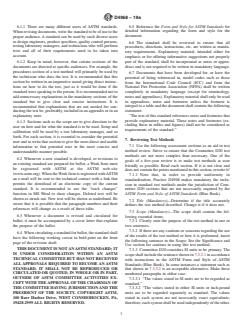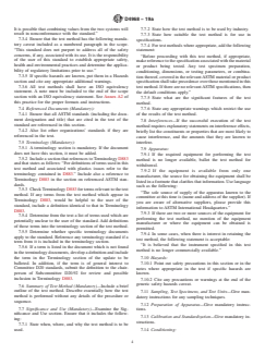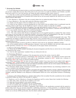 - Mandatory Document Structure: Details required sections for test methods and specifications, such as Scope, Referenced Documents, Terminology, Apparatus, Procedure, Calculations, Precision and Bias, and Keywords.