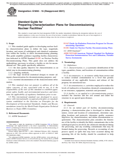 ASTM E1892-15(2021) - Standard Guide for Preparing Characterization Plans for Decommissioning Nuclear Facilities
