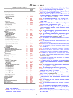 and lacquer coatings. The test methods included are listed in